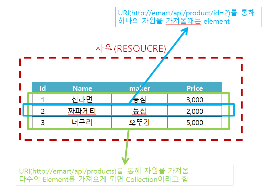 - URI를 통한 접근법 및 Collection, Element 사례
