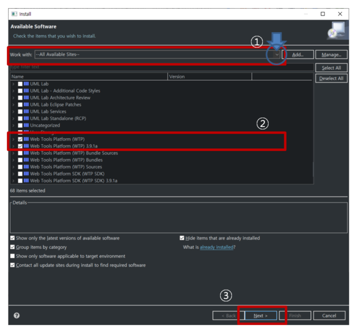 2) Web Tools Platform (WTP), Web Tools Platform (WTP) xxx 클릭