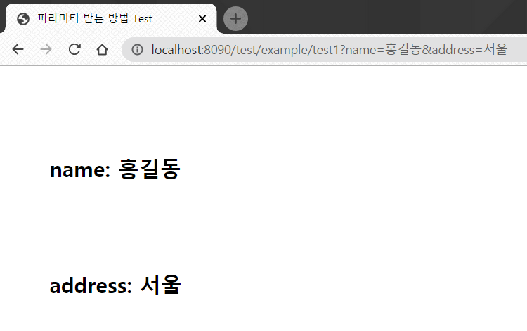 public void exam1(@RequestParam String name, @RequestParam String address, Model model) {