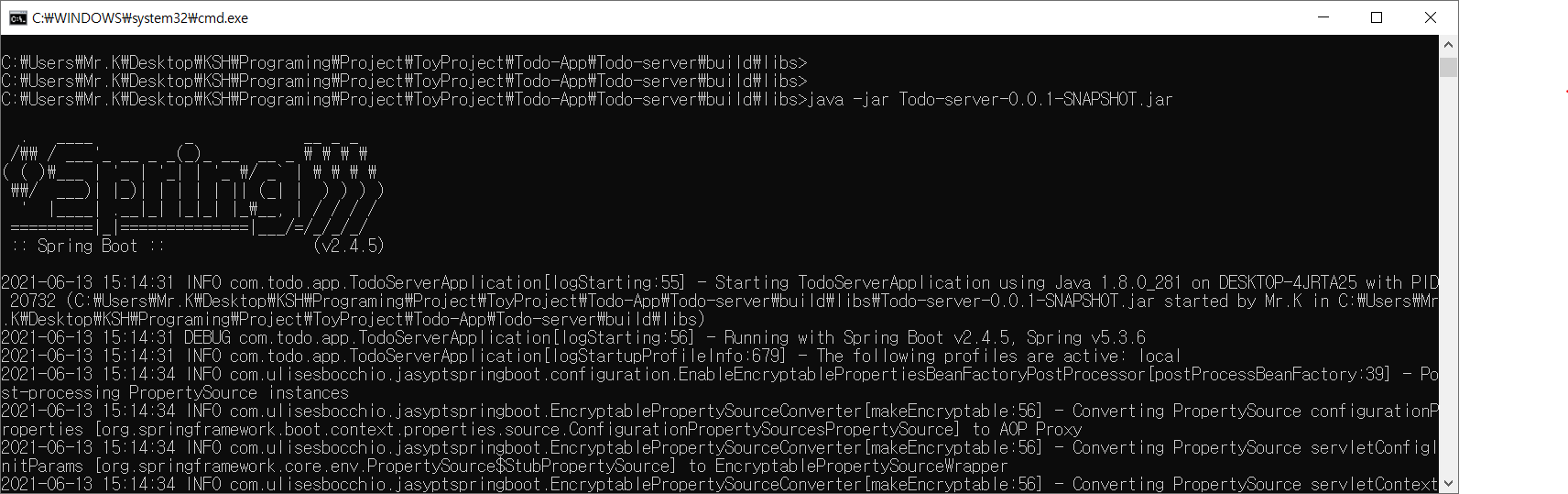 5) 해당 프로그램은 java -jar \[jar파일명\] 명령어를 통해 실행가능하다.