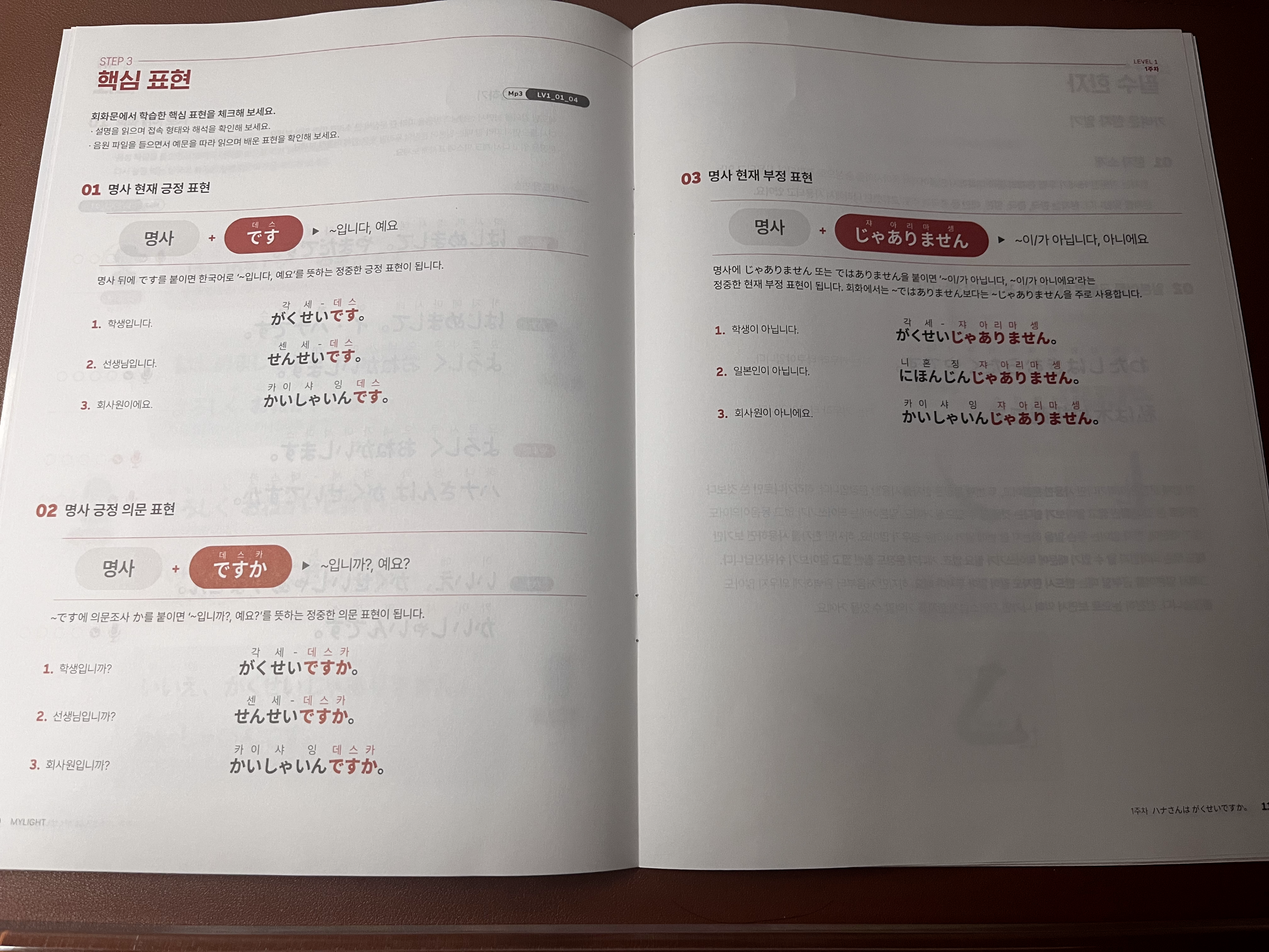 특히 "~です" (입니다)와 "~ではありません" (아닙니다)을 활용해 문장을 만드는 연습을 했어요.