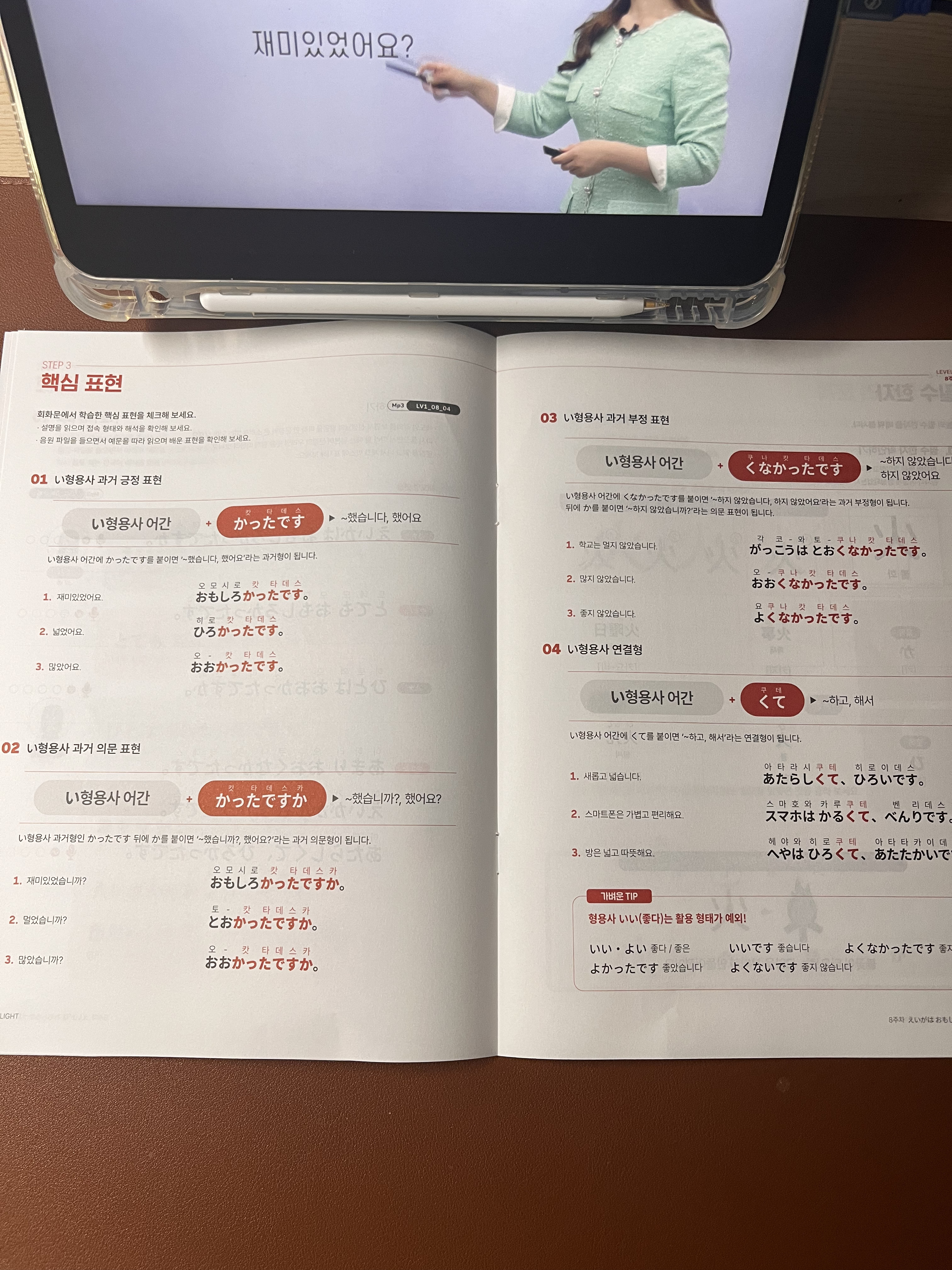 💡 핵심 표현 이번 주에는 い형용사의 과거형 변화에 대해 배웠어요.