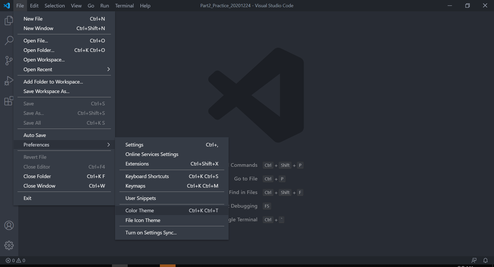 - File > Preferences > Color Theme 클릭 (단축키: CTRL + K or CTRL + T)