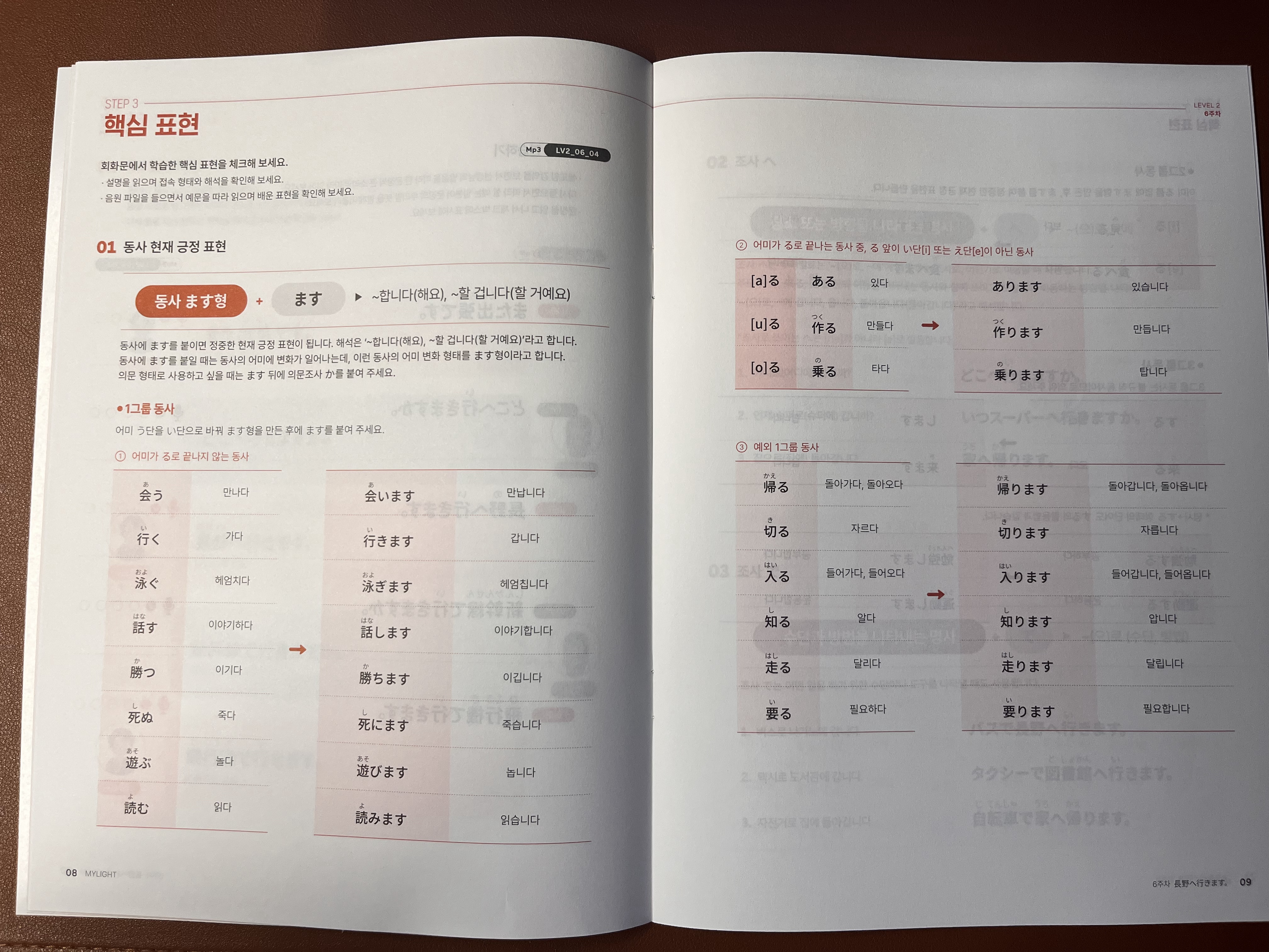 이번 주의 핵심은 동사 현재 긍정형 활용이었어요. 예를 들어,