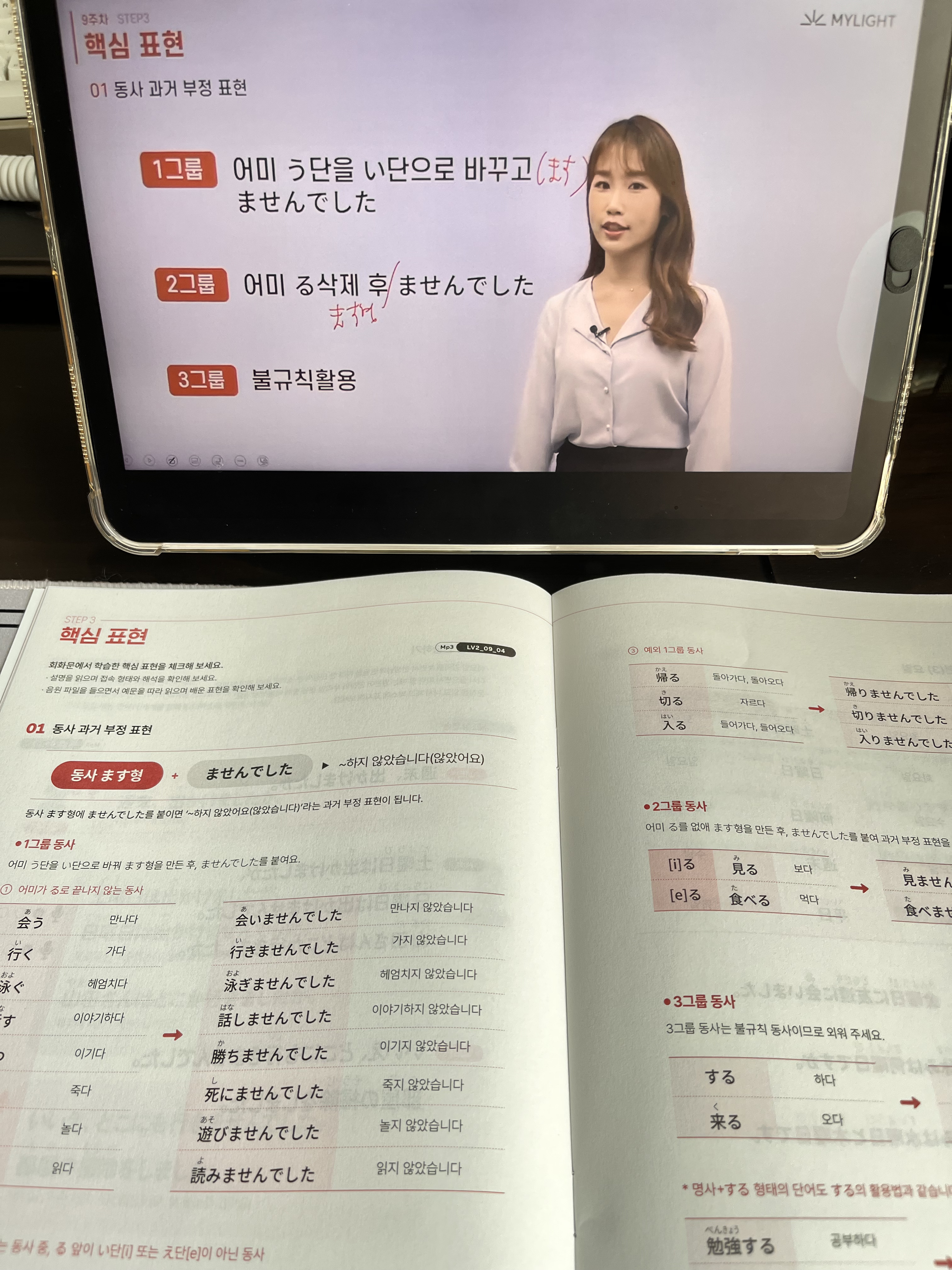 문형 정리를 통해 1그룹, 2그룹, 3그룹 동사들을 어떻게 활용하는지도 같이 배웠습니다. 반복해서 써 보니 어느새 익숙해졌어요!