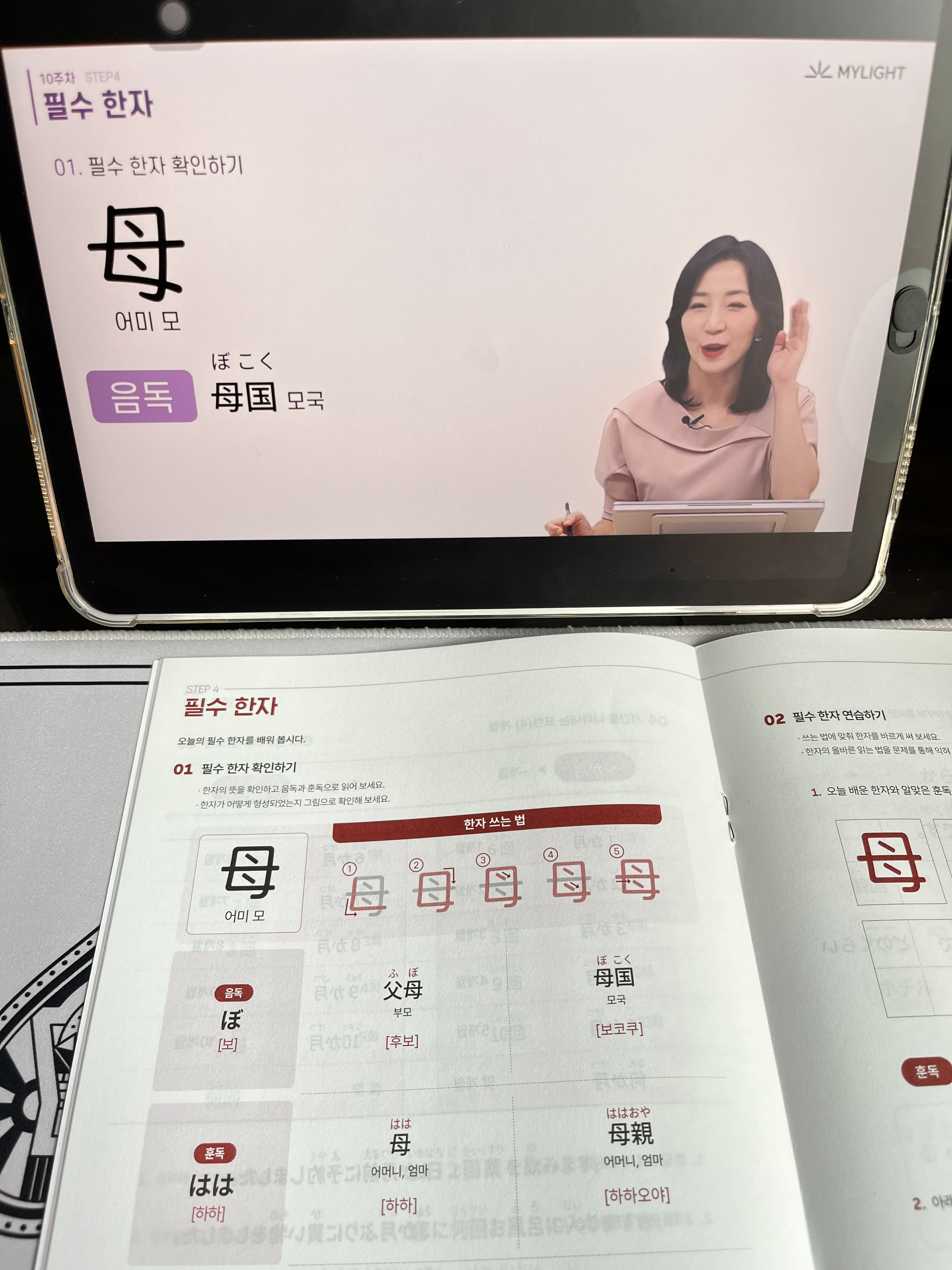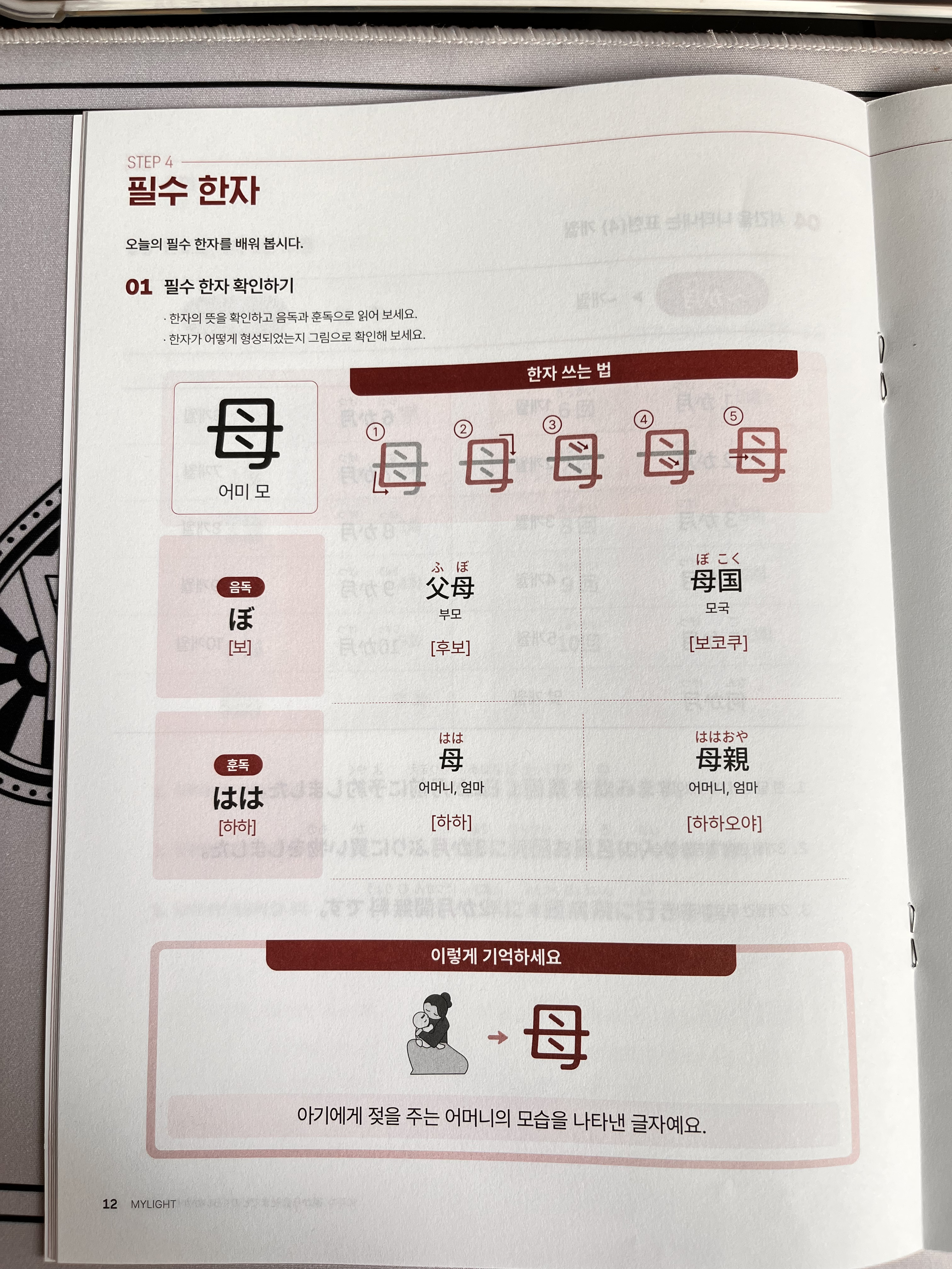 예시 단어로 母国(모국), 母親(어머니) 등을 배웠어요.