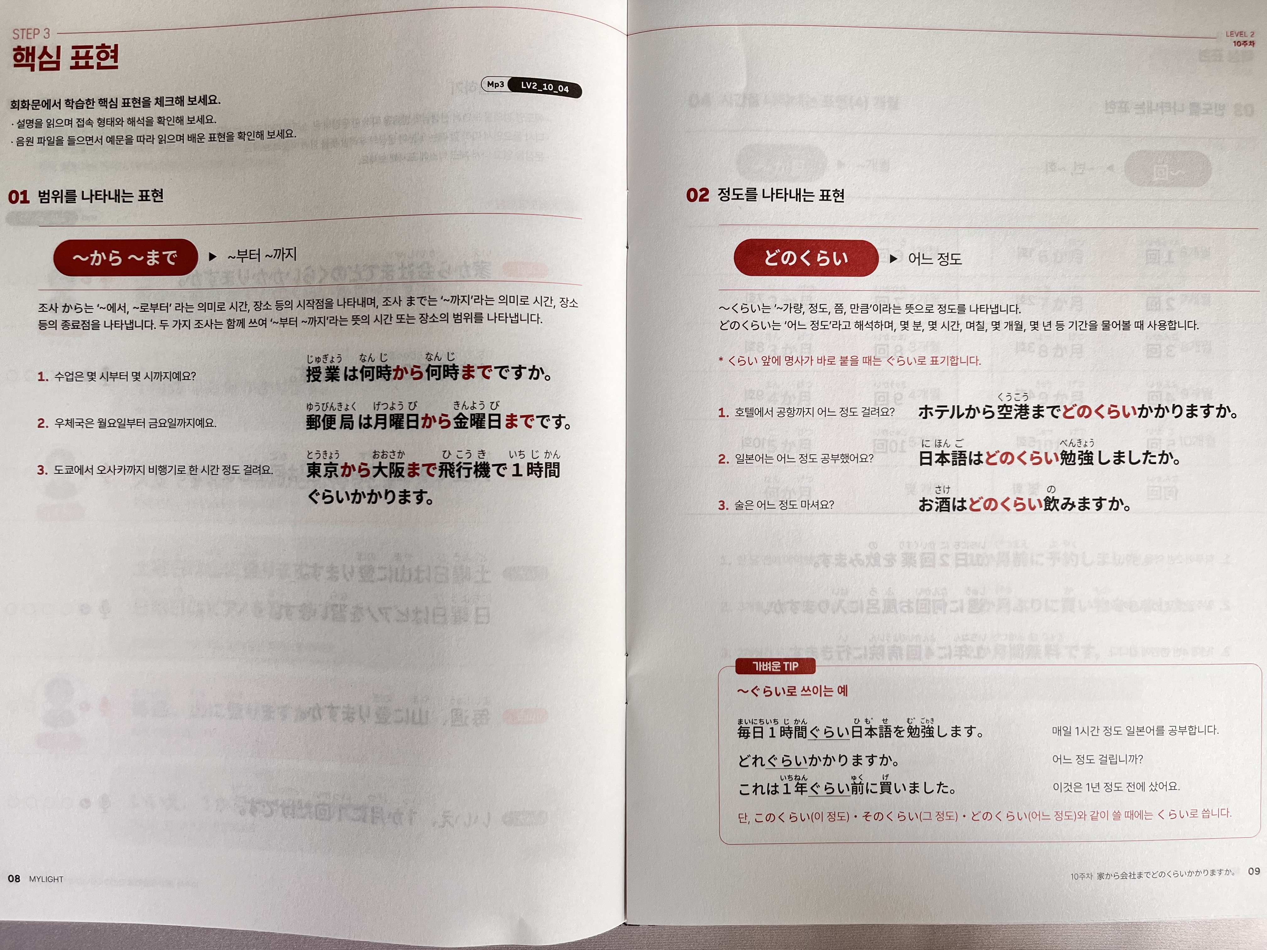 “~くらい”나 “~回” 같은 표현은 평소에도 익숙해서 그런지 금방 익힐 수 있었고,