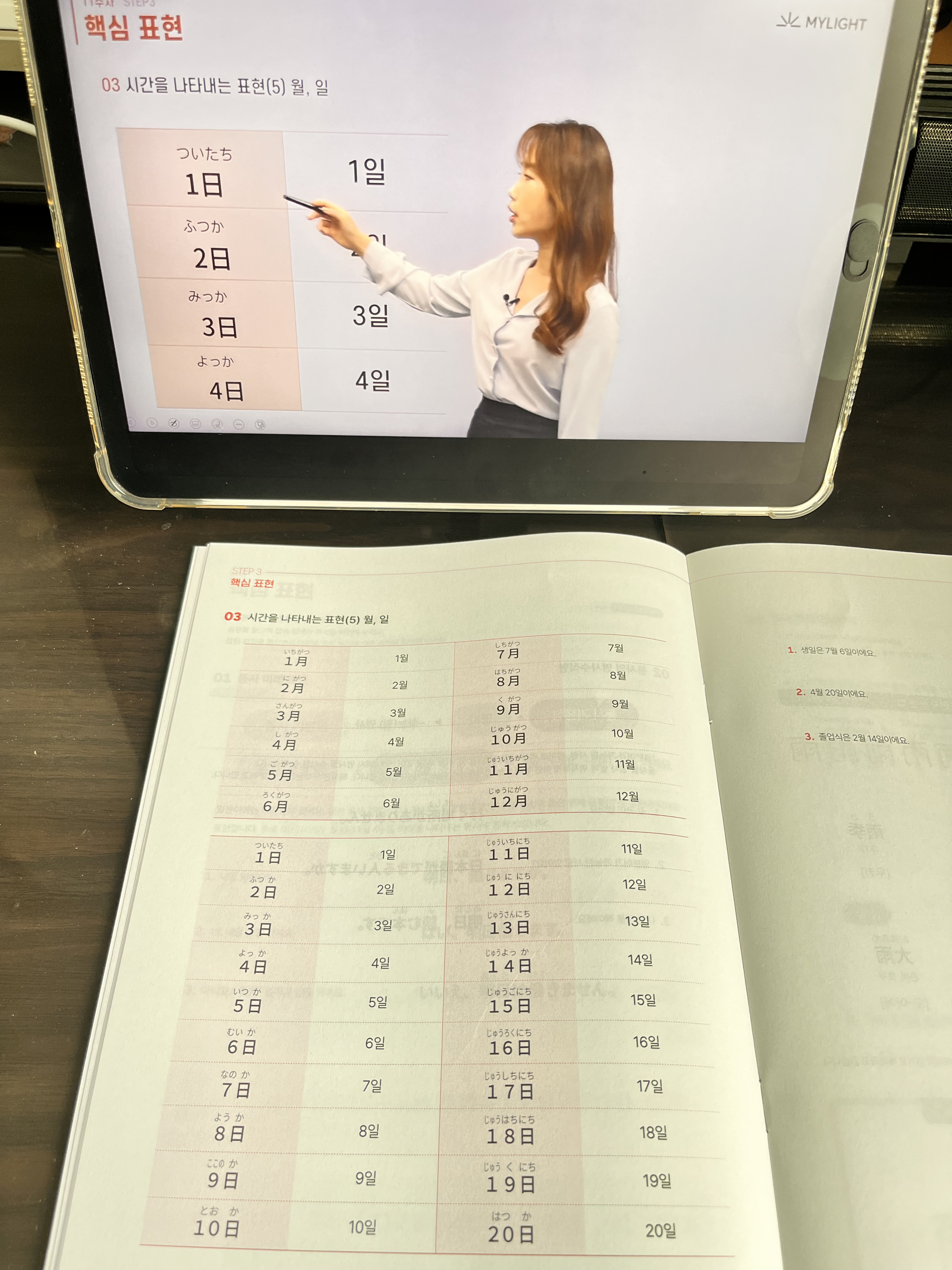 이번 주는 월/일 표현도 함께 나와서 날짜 말하기도 연습했어요.