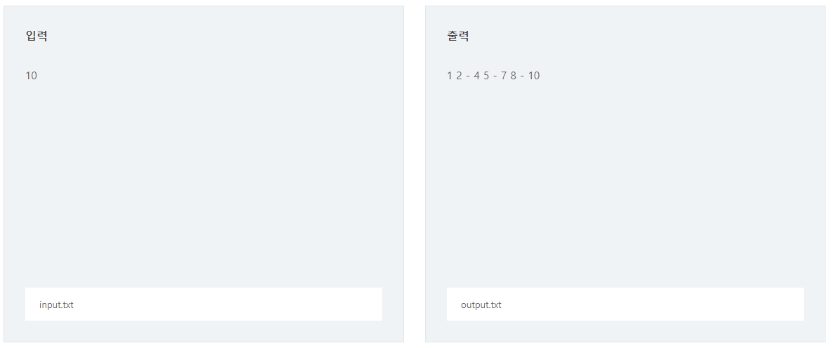 입력으로 정수 N 이 주어졌을 때, 1~N 까지의 숫자를