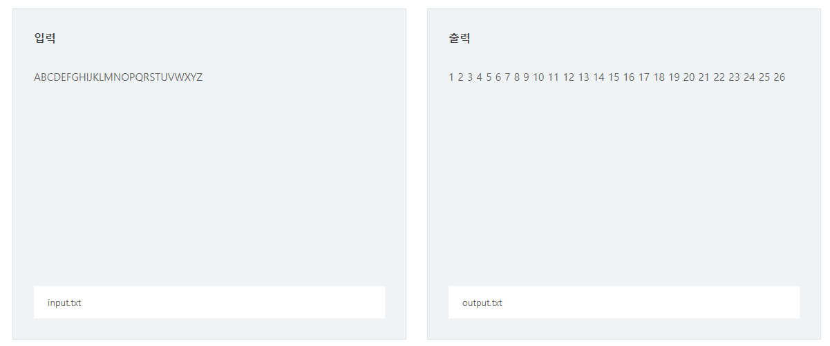 알파벳으로 이루어진 문자열을 입력 받아 각 알파벳을 1부터 26까지의 숫자로 변환하여 출력하라.