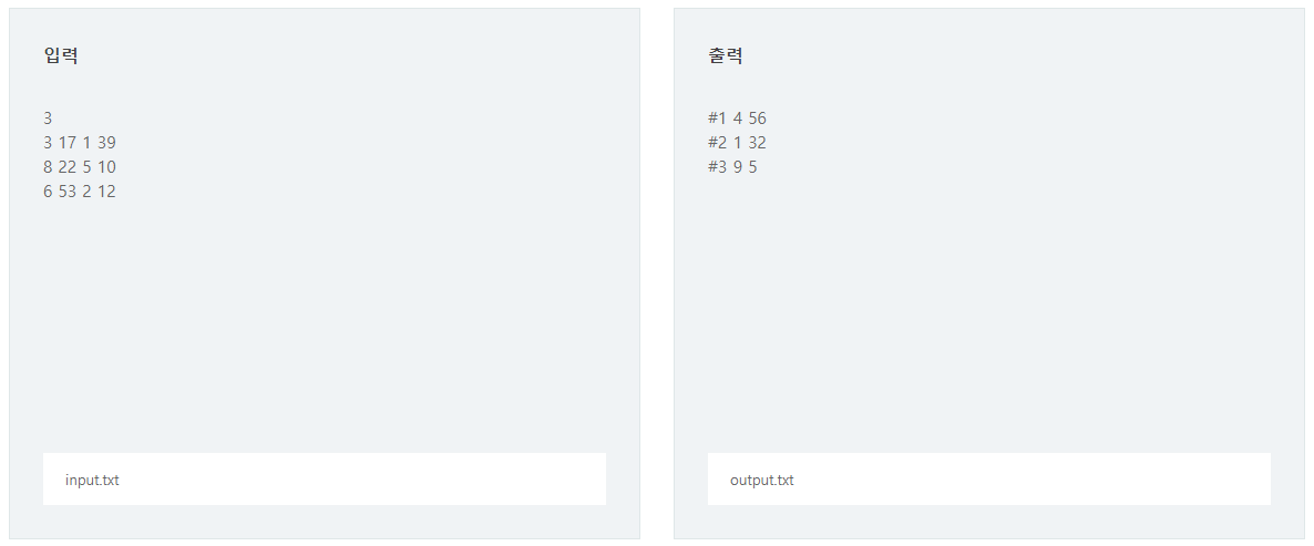 (t는 테스트 케이스의 번호를 의미하며 1부터 시작한다.)