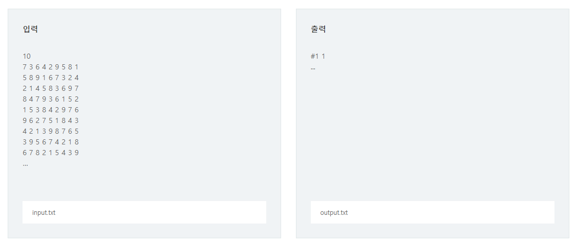 2. 입력으로 주어지는 퍼즐의 모든 숫자는 1 이상 9 이하의 정수이다.