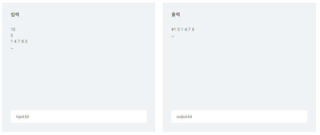 (t는 테스트 케이스의 번호를 의미하며 1부터 시작한다.)