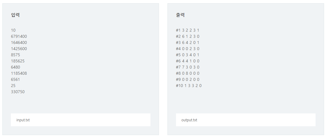 (t는 테스트 케이스의 번호를 의미하며 1부터 시작한다.)