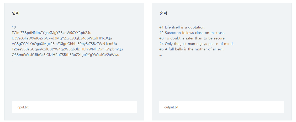 테스트 케이스 t에 대한 결과는 “#t”을 찍고, 한 칸 띄고, 정답을 출력한다.