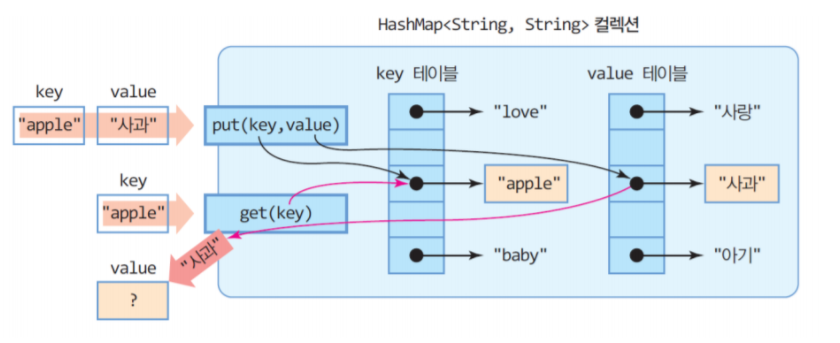 - HashMap은 해시 함수를 통해 '키'와 '값'이 저장되는 위치가 결정된다