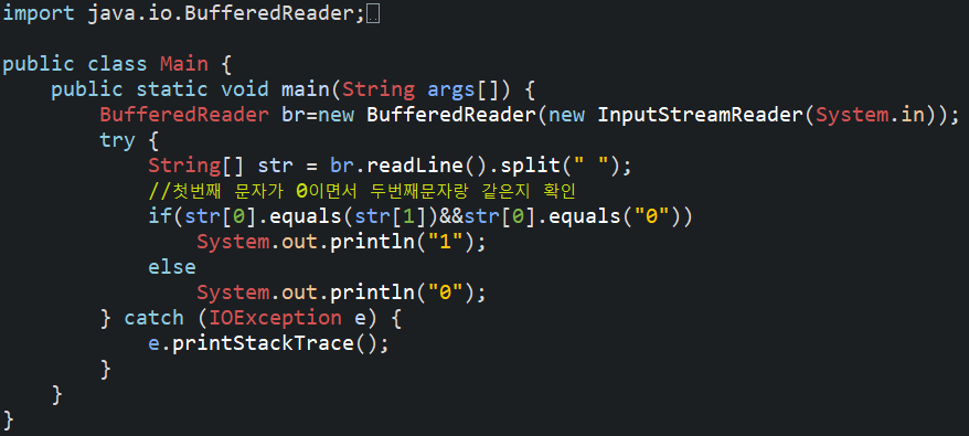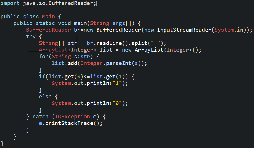 b가 a보다 크거나 같으면 1을, 그렇지 않으면 0을 출력하는 프로그램을 작성해보자.