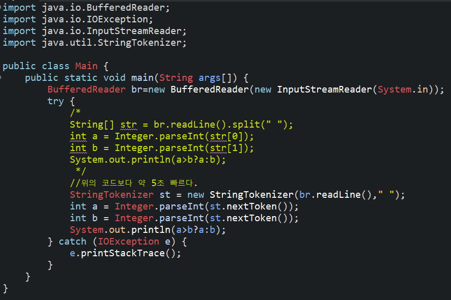 입력된 두 정수 a, b 중 큰 값을 출력하는 프로그램을 작성해보자.